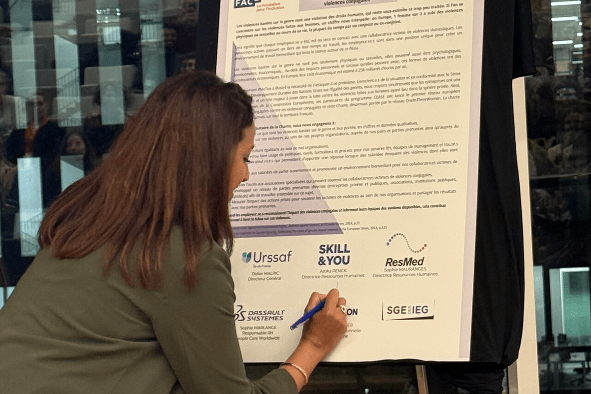 Chez Skill & You, nous avons décidé d’affirmer notre rôle d’entreprise responsable en signant la Charte d’engagement pour lutter contre les violences faites aux femmes. Cette signature marque également notre adhésion au réseau OneInThreeWomen, cofondé par FACE, la Fondation pour l’Inclusion et Kering.